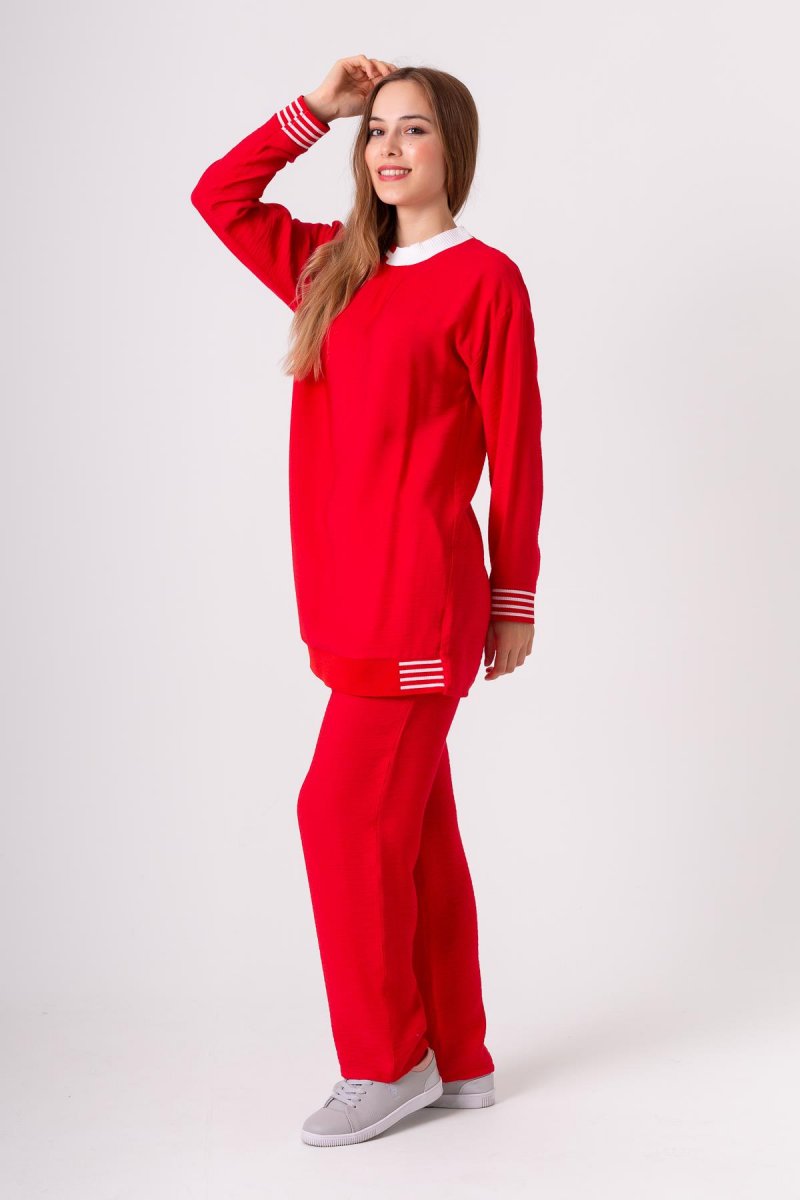 ONX10 Kırmızı Ribana Detaylı İkili Takım