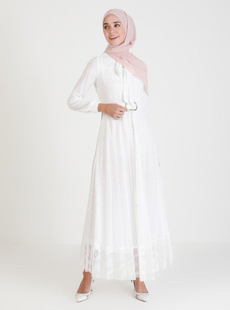 BÜRÜN Ekru Dantel Detaylı Elbise