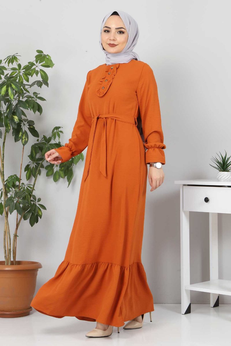 Tesettür Dünyası Kiremit Eteği Volanlı Elbise