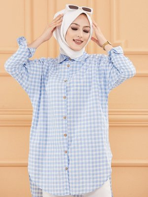 Tofisa Bebe Mavi Kare Desenli Tunik