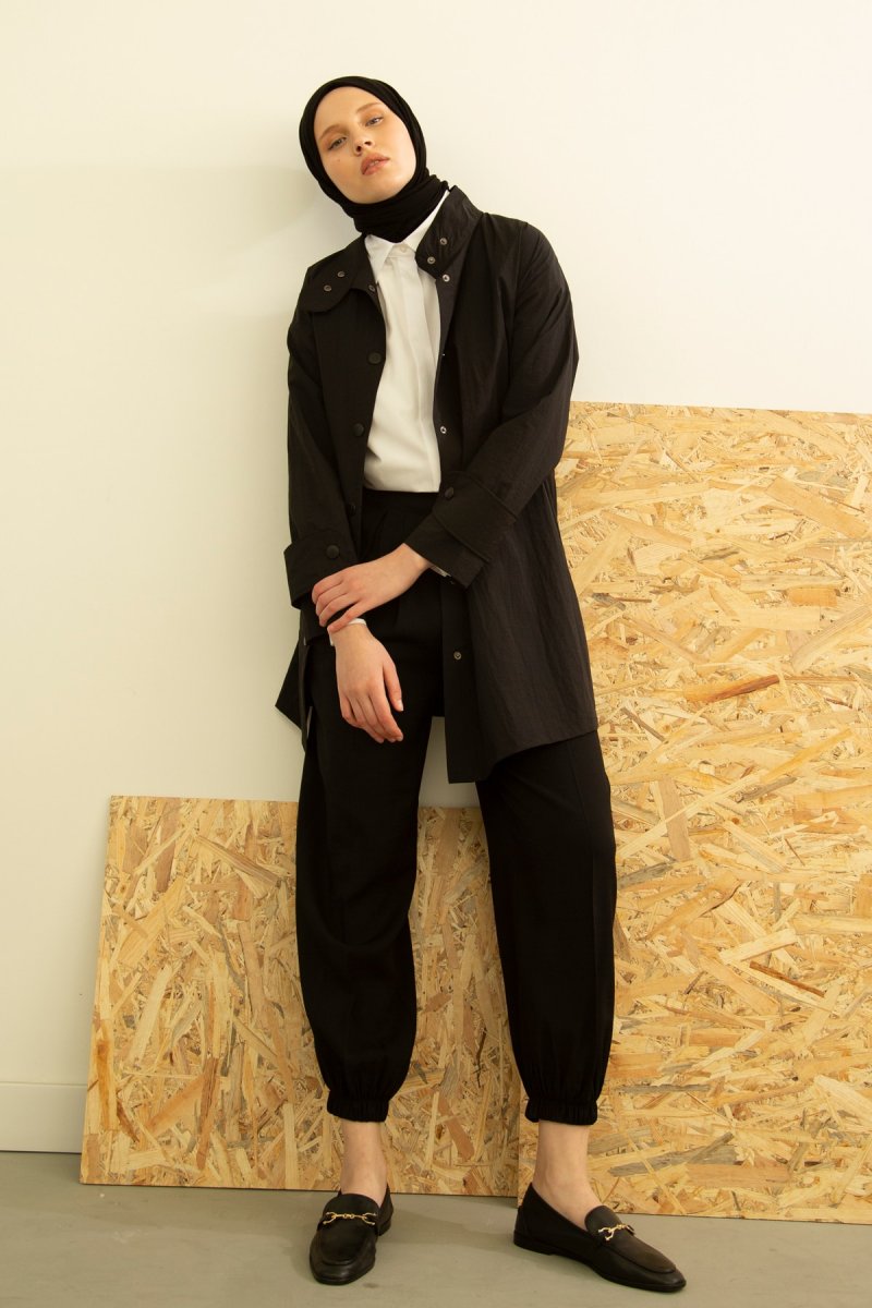Allday Siyah Asimetrik Çıtçıtlı Kap