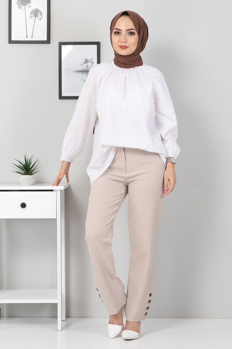 MISSVALLE Bej Biye Detaylı Kumaş Pantolon
