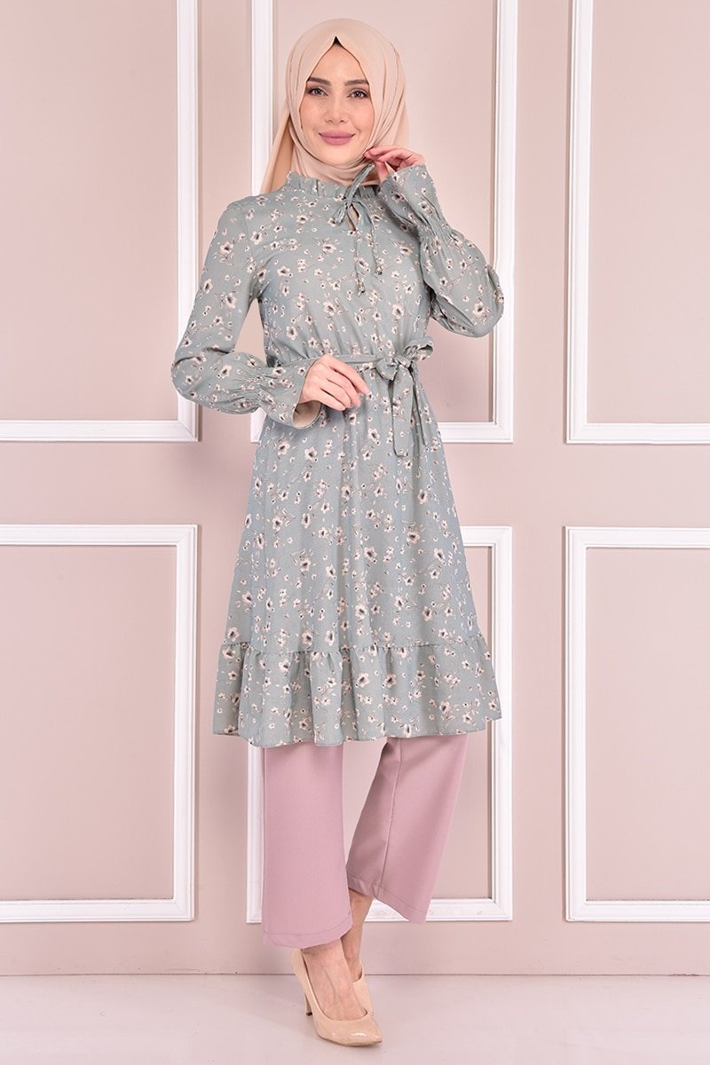 Moda Merve Mint Yaka Bağcıklı Kombin