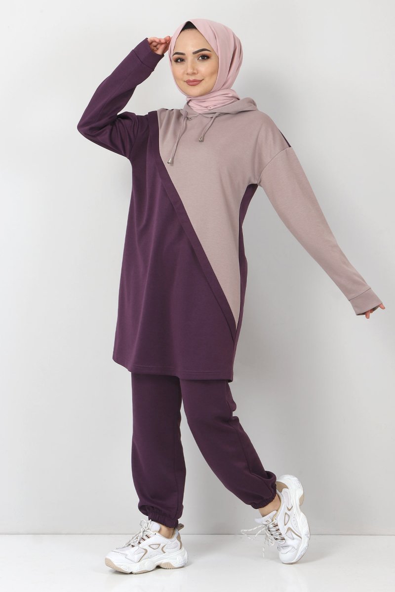 Tesettür Dünyası Mor Çapraz Şeritli İkili Takım