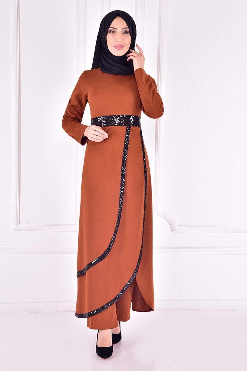 Moda Merve Taba Pullu Kombin