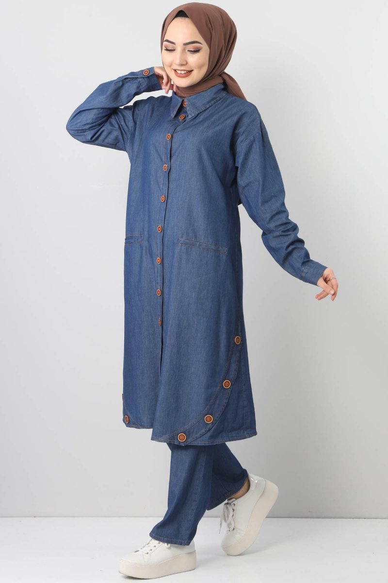 Tesettür Dünyası Koyu Mavi Cepli Kot İkili Takım