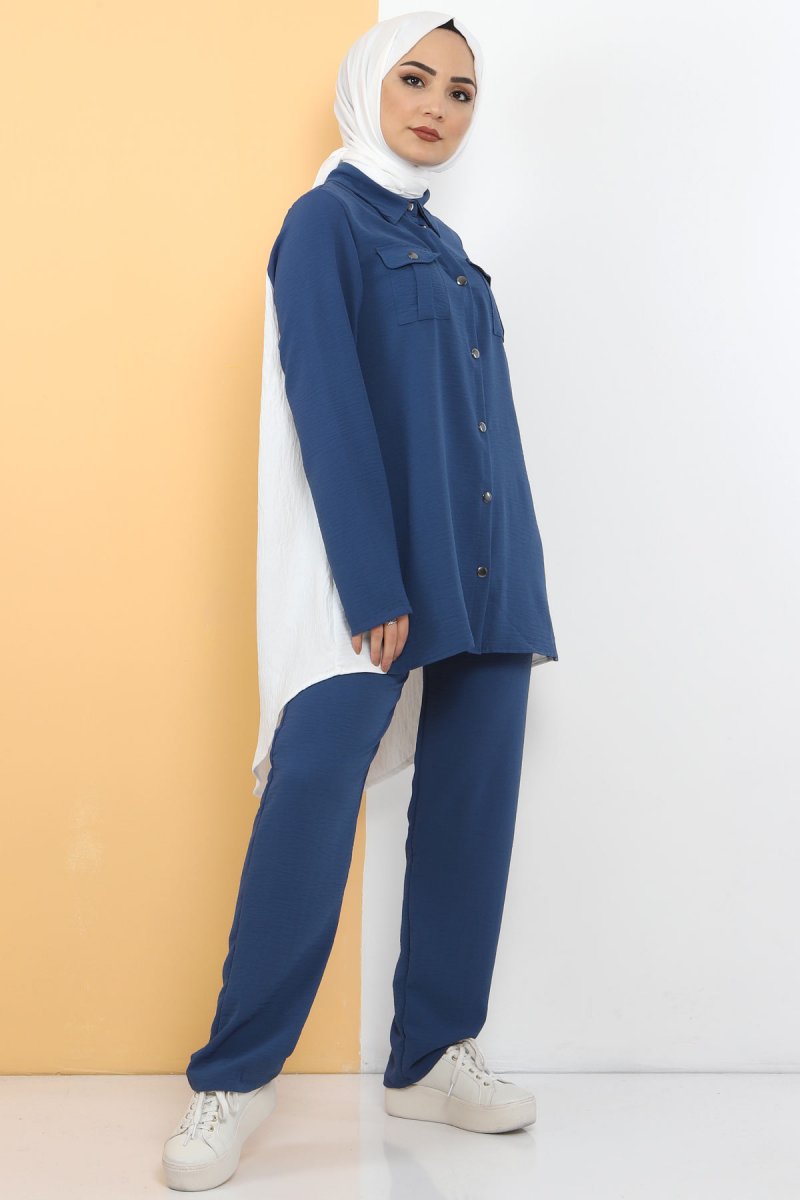 Tesettür Dünyası İndigo Çıtçıtlı Ayrobin İkili Takım