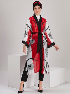 ELEUSIS by Gamze Ertin Kırmızı Desenli Bone & Kimono Takım