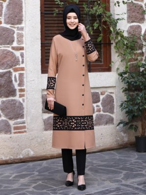 Azra Design Camel Deniz Tunik&Pantolon İkili Abiye Takım