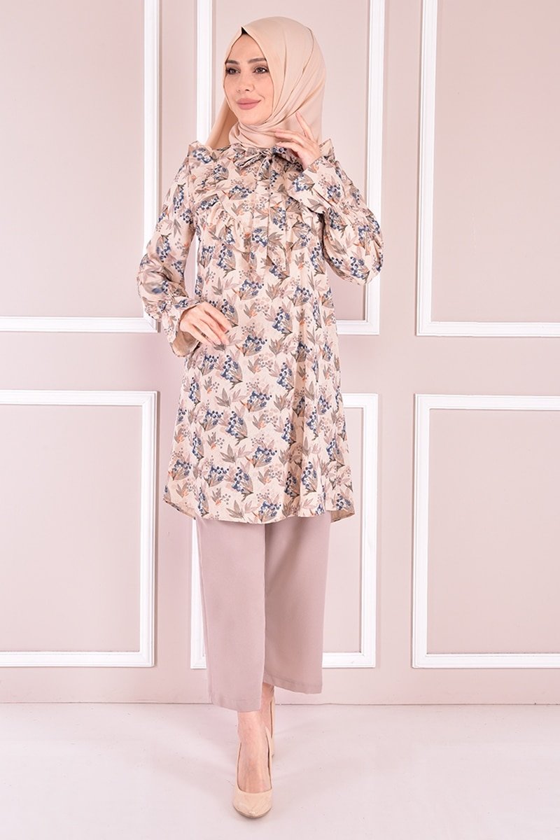 Moda Merve İndigo Yaka Bağcıklı Kombin