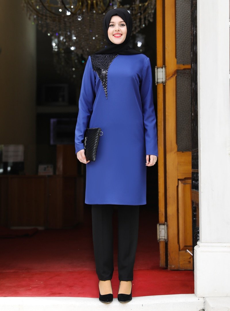 Esmaca Mavi Esma Tunik&Pantolon İkili Abiye Takım