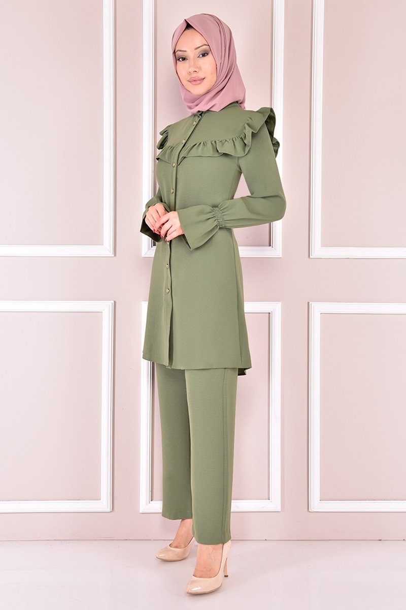 Moda Merve Haki Düğmeli Kombin