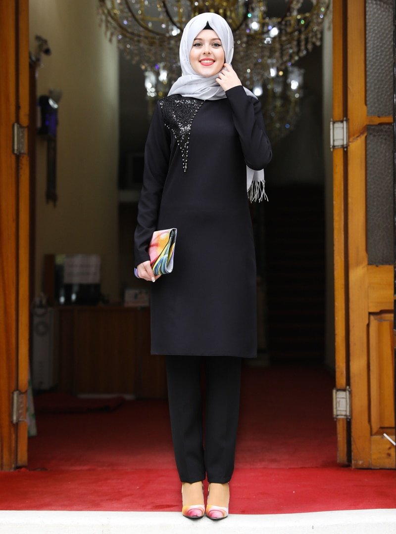 Esmaca Siyah Esma Tunik&Pantolon İkili Abiye Takım