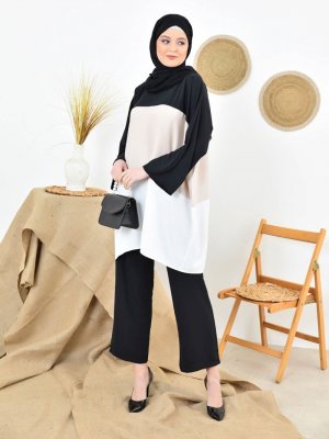 Tuncay Siyah Bej Tunik&Pantolon İkili Takım