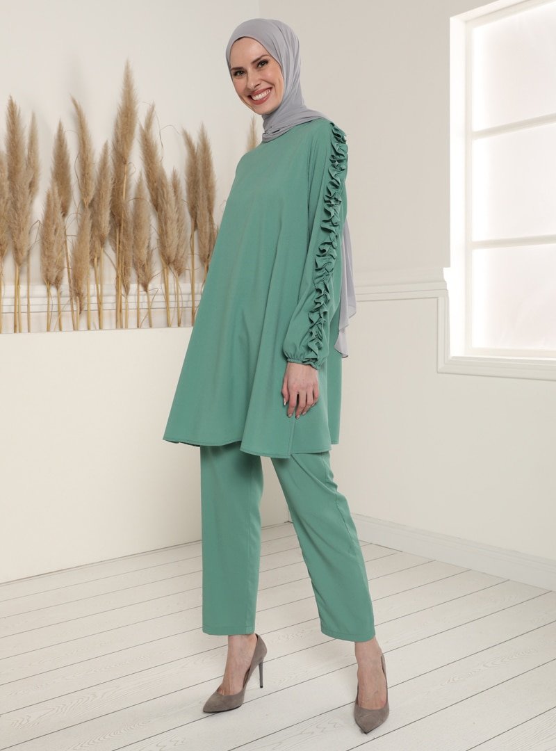 Tavin Çağla Kolları Fırfırlı Tunik&Pantolon İkili Takım
