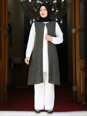 Amine Hüma Haki Aleyna Tunik&Yelek İkili Takım