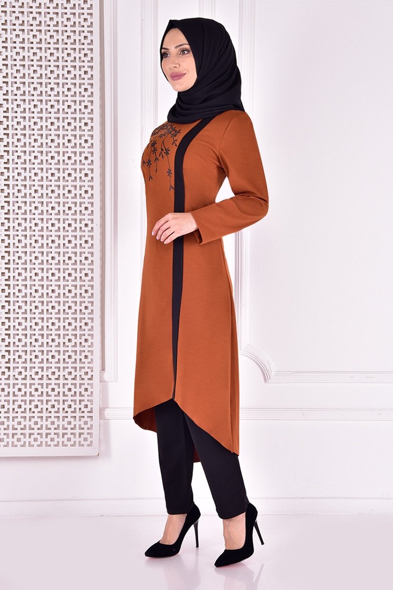Moda Merve Kiremit Baskı Detaylı Abiye Takım