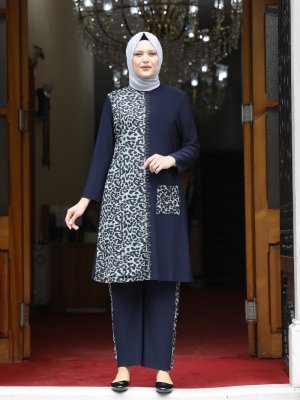 Amine Hüma Lacivert Leopar İkili Takım