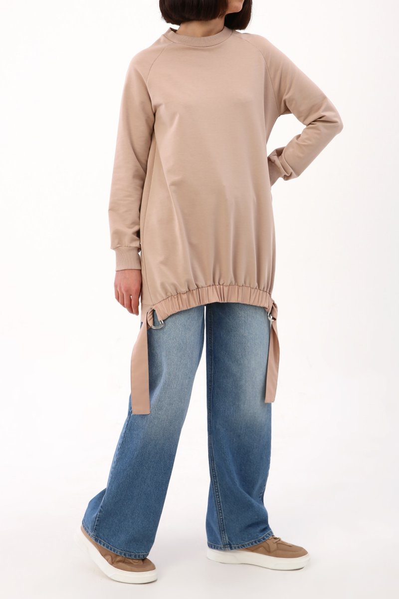 Allday Bej Eteği D Tokalı Ve Lastikli Sweat Tunik
