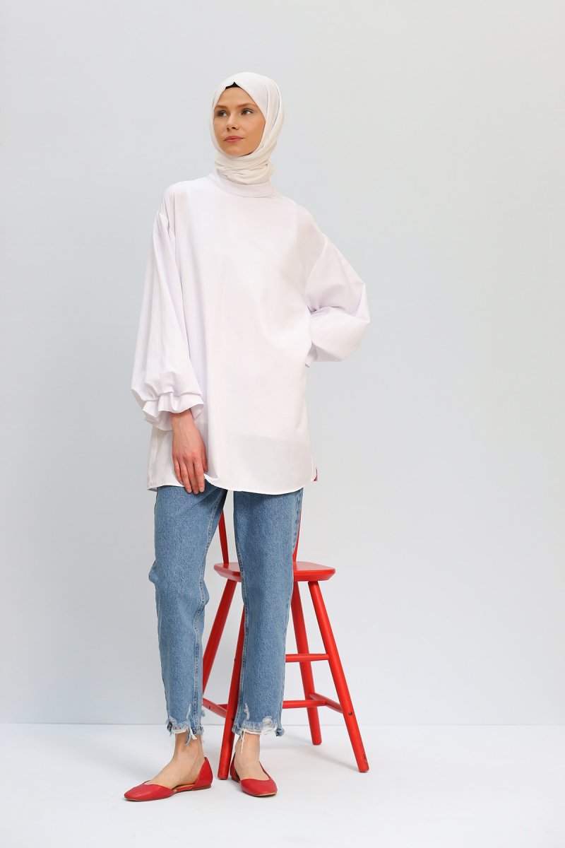 Allday Beyaz Balon Kol Tunik