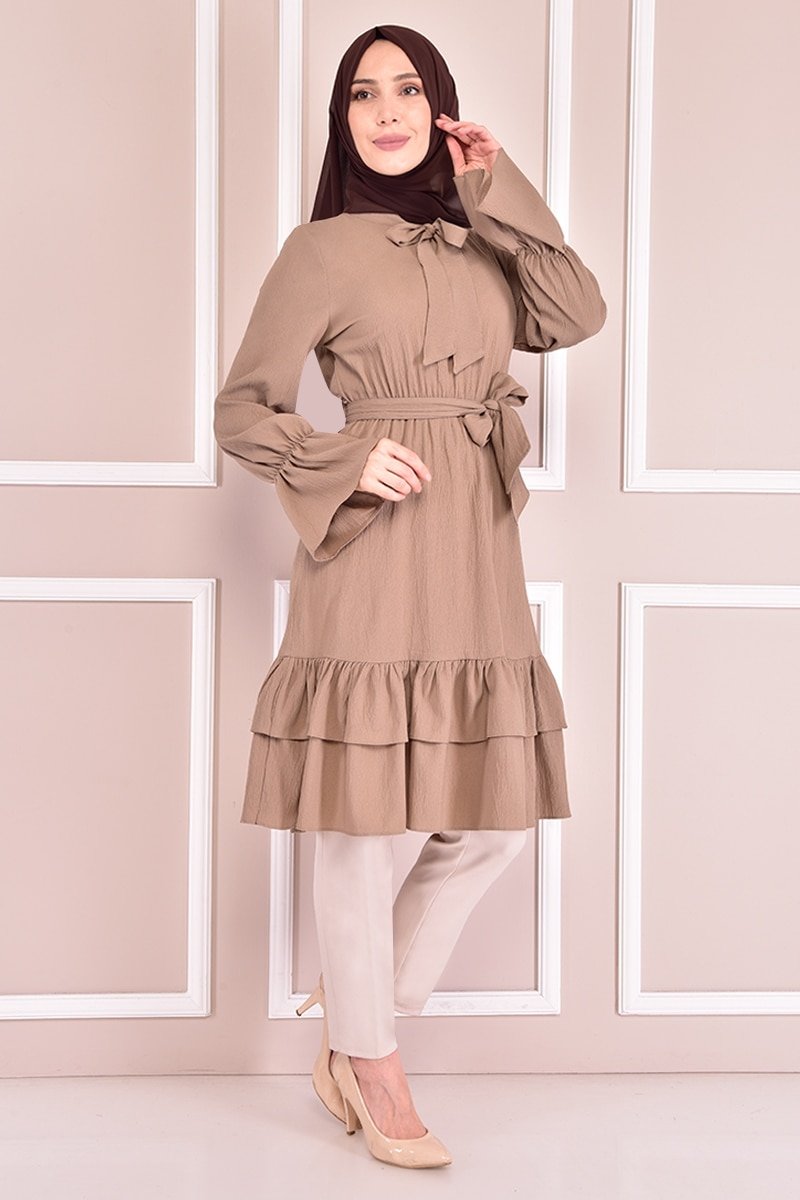 Moda Merve Vizon Yaka Bağcıklı Tunik