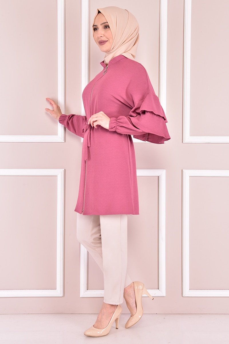 Moda Merve Pembe Fermuarlı Tunik