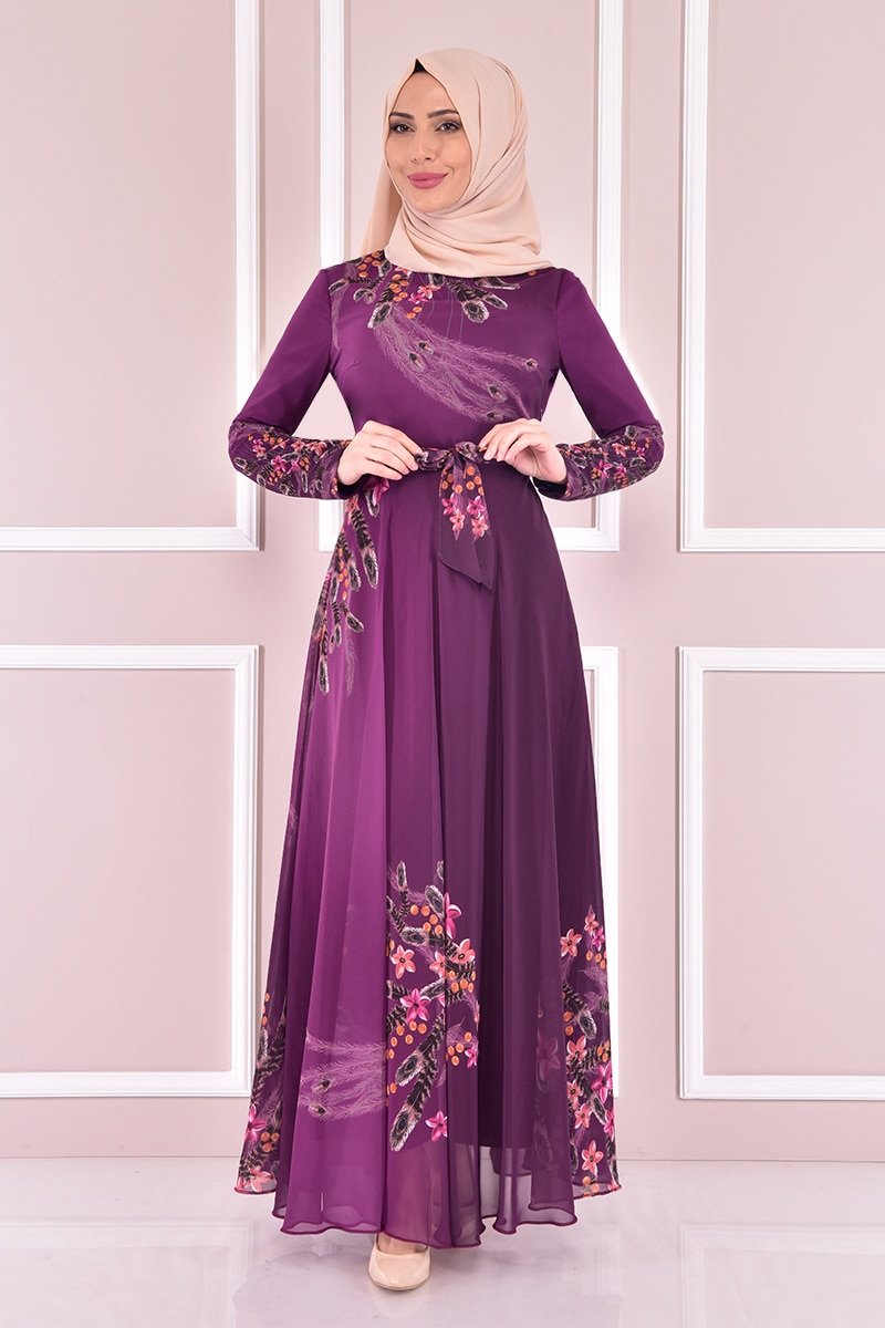 Moda Merve Mor Şifon Abiye Elbise