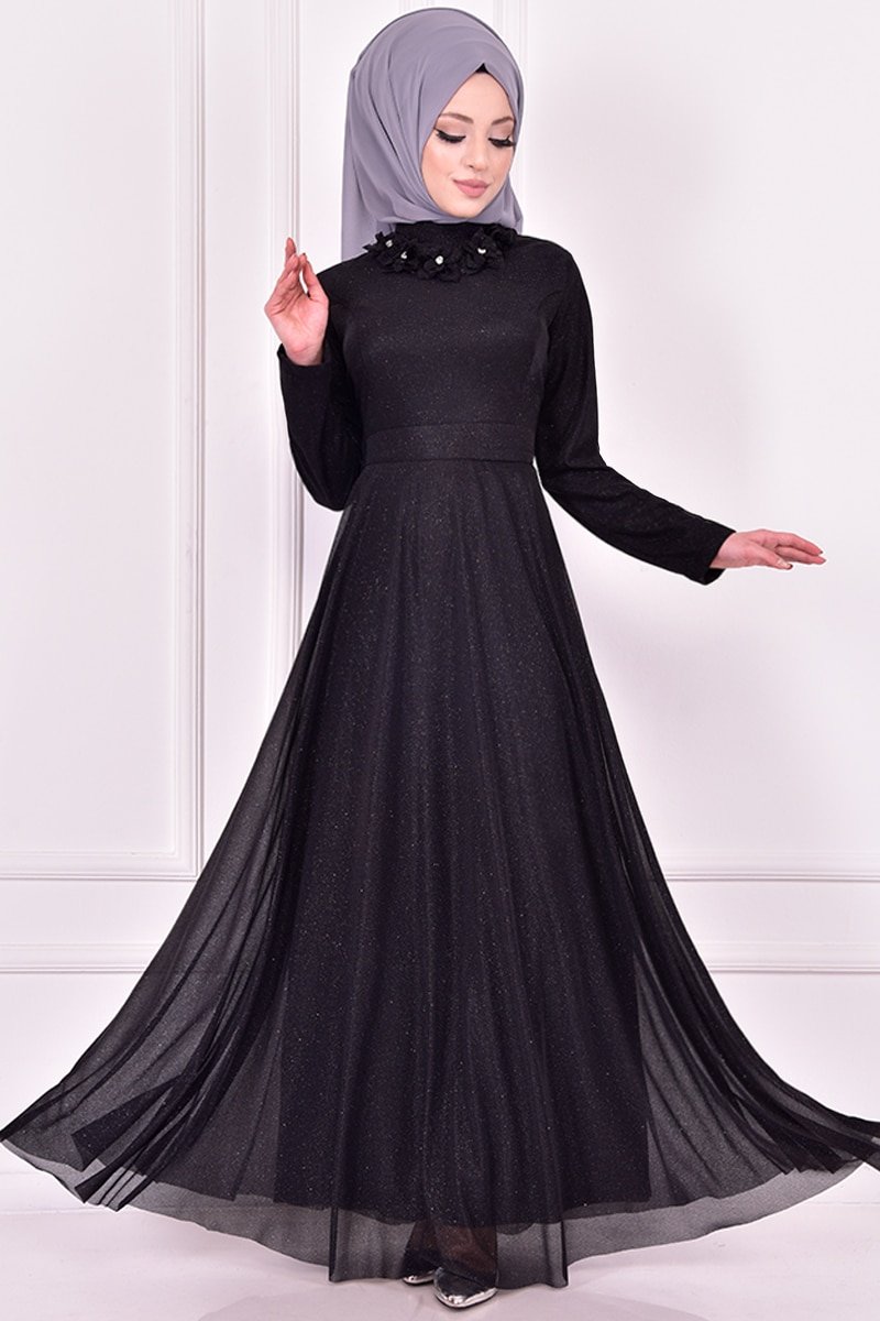 Moda Merve Siyah Simli Abiye Elbise
