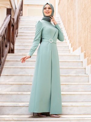 VUKKA Mint Kruvaze Kalem Abiye Elbise