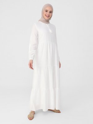 Refka Off White Püskül Detaylı Kat Kat Astarlı Elbise