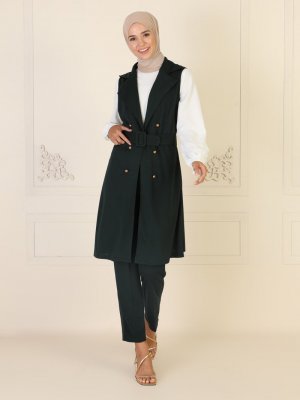 AYŞE MELEK TASARIM Zümrüt Yeşili Ceket Yaka Tunik&pantolon İkili Abiye Takım
