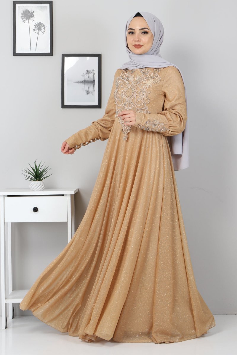 MISSVALLE Gold Dantel Detaylı Abiye Elbise