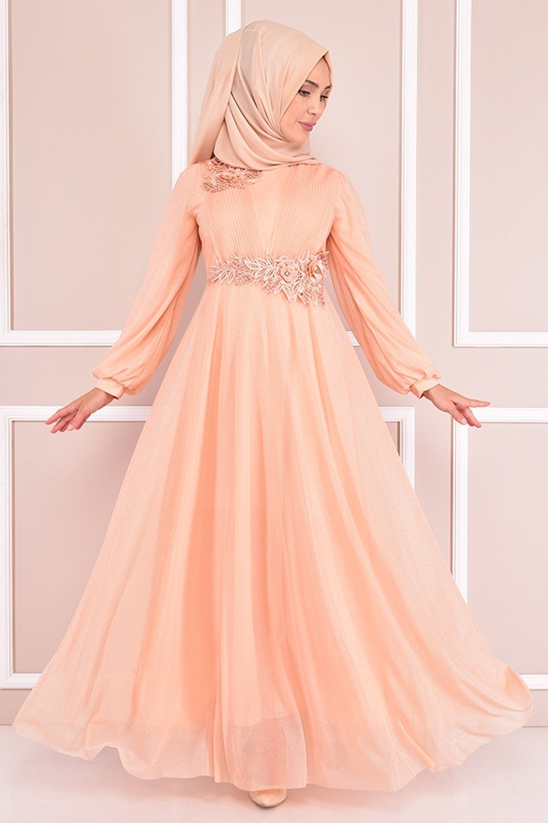 Moda Merve Somon Simli Abiye Elbise