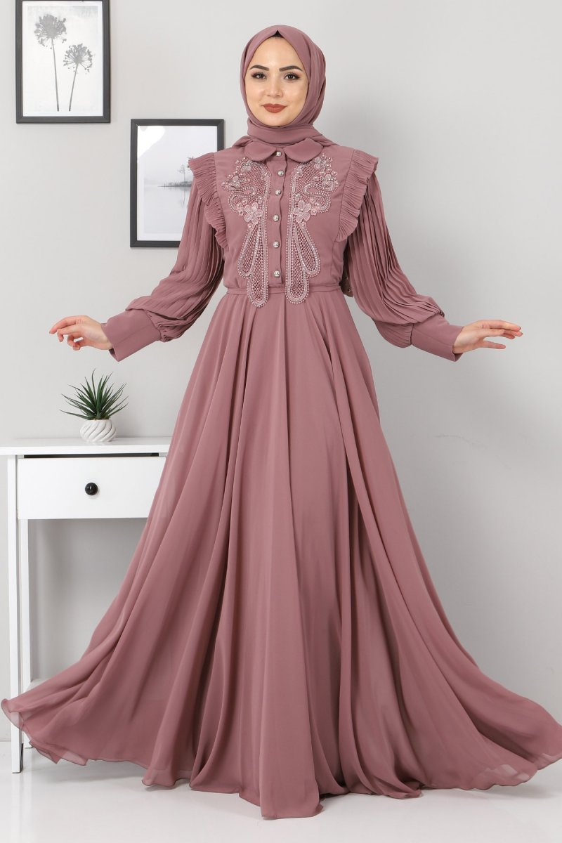MISSVALLE Gül Kurusu Piliseli İncili Abiye Elbise