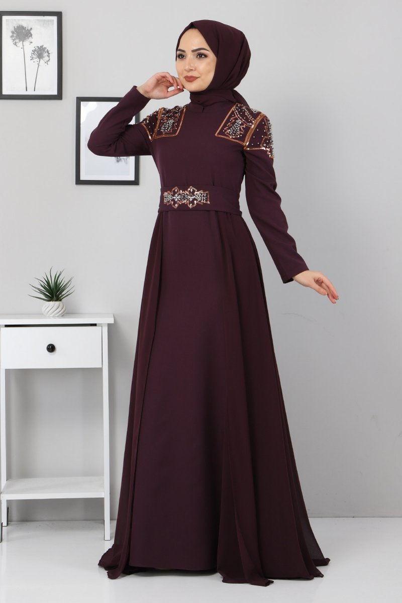 MISSVALLE Mürdüm Şifon Detay İncili Abiye Elbise