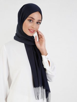 Renkli Butik Eşarp Lacivert Püskül Detaylı Şal