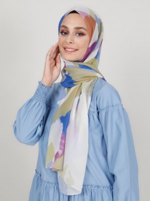 Mervin Şal Çok Renkli Desenli Şifon Şal