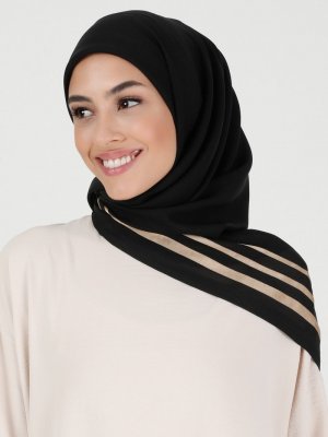 Miray Siyah Gold Cm Floş Şifon Eşarp