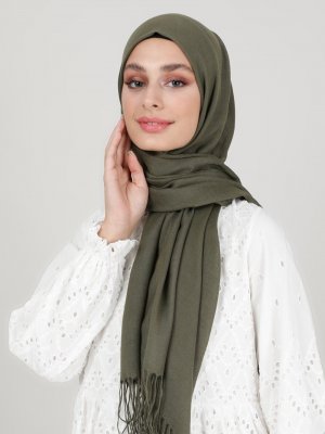 Mervin Şal Haki Bal Köpüğü Leylak 3'lü Paket Uzun Saçaklı Paşmina Şal
