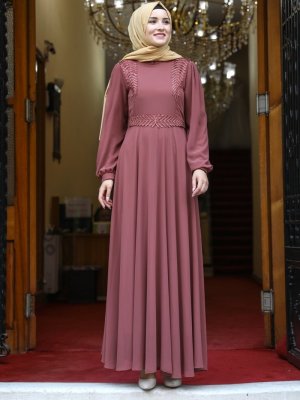 Amine Hüma Tarçın Simge Dantelli Abiye Elbise
