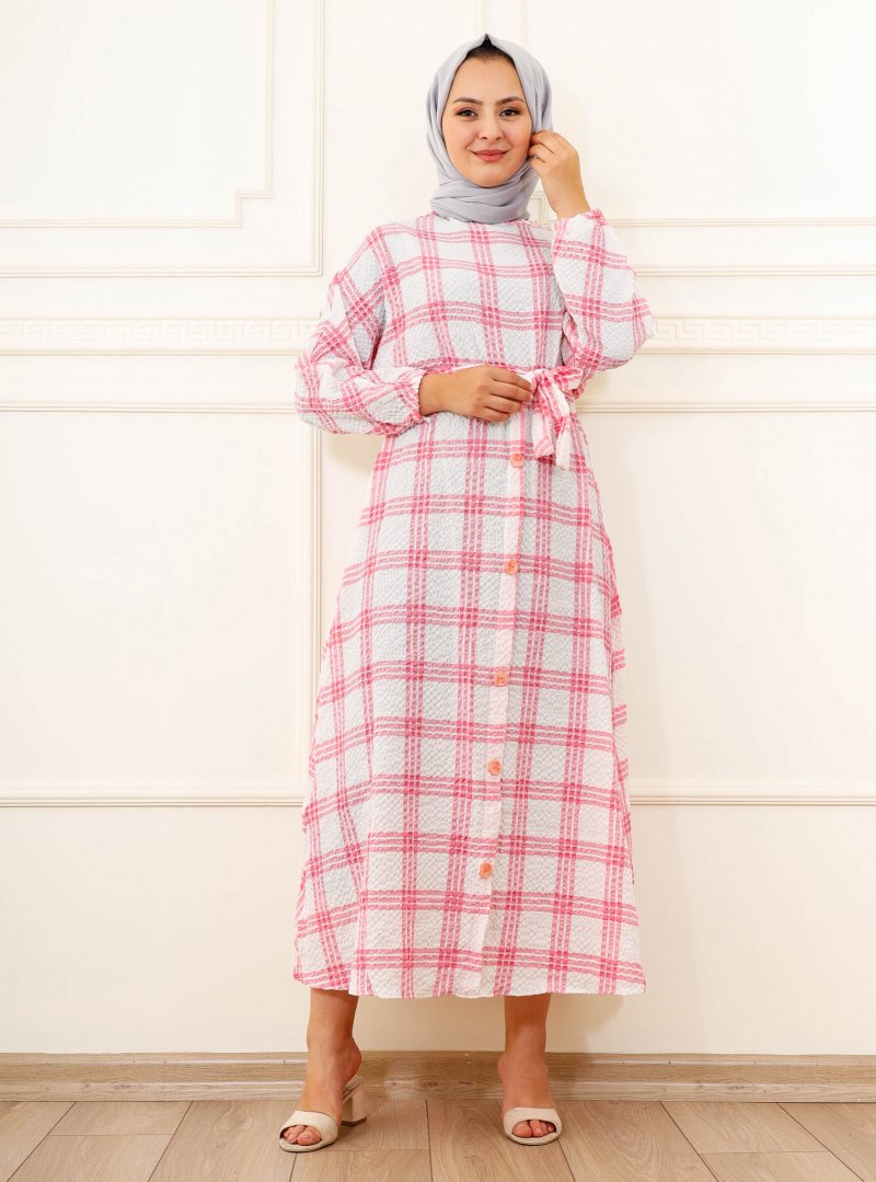 Moda Dua Pembe Ekoseli Elbise