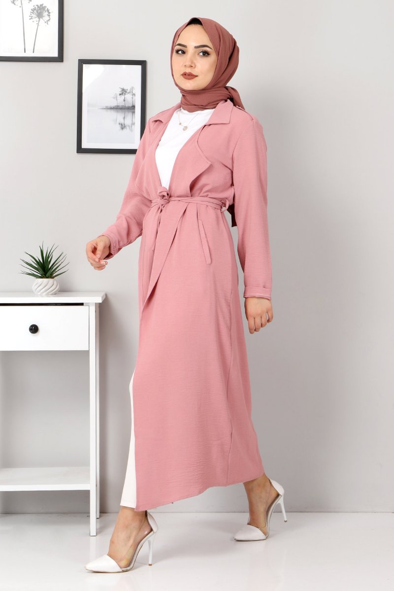 Tesettür Dünyası Gül Kurusu Beli Kemerli Ayrobin Kap