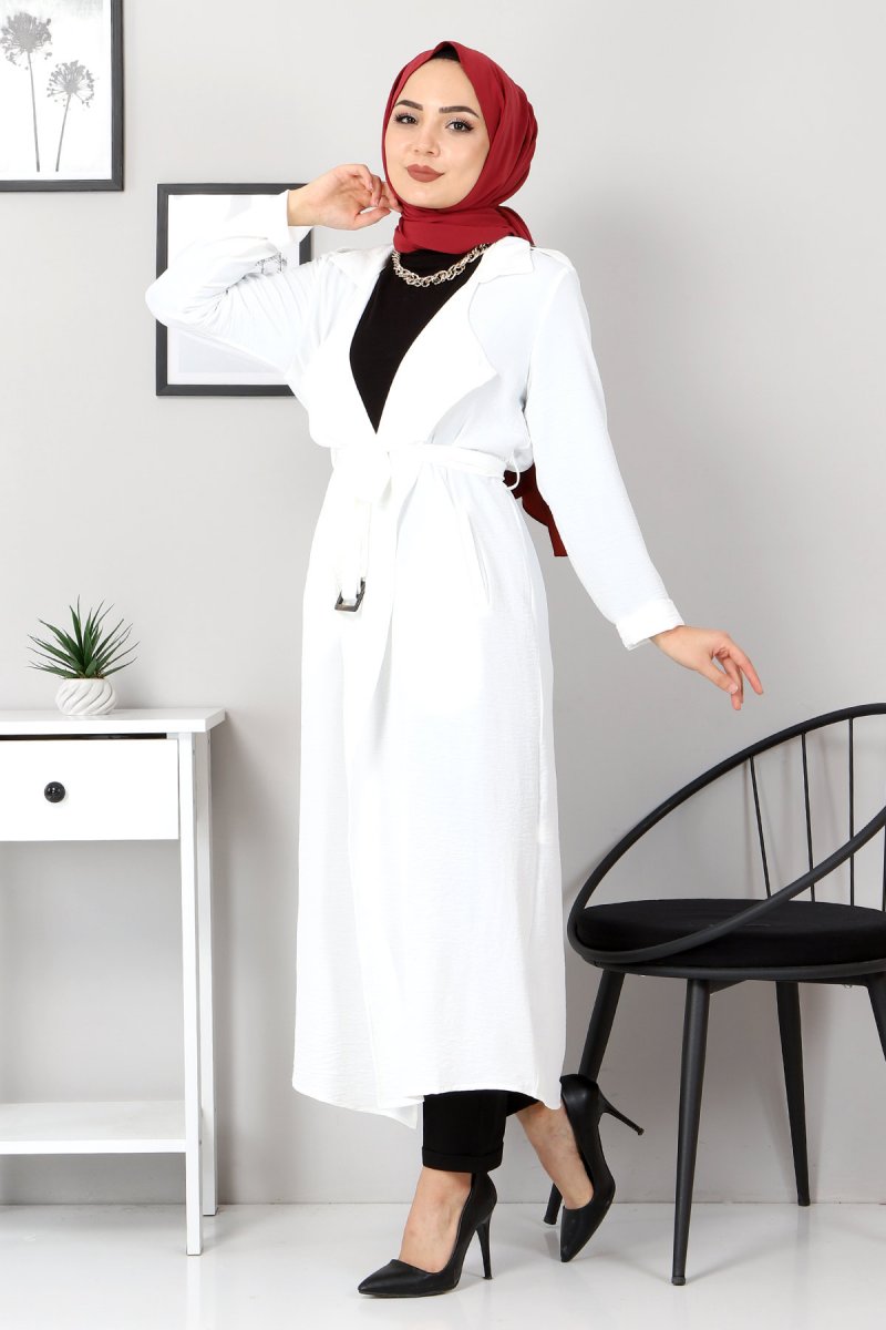 Tesettür Dünyası Ekru Beli Kemerli Ayrobin Kap
