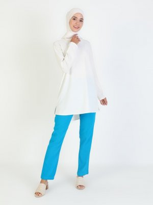 Elis Şile Bezi Turkuaz Belden Lastikli Şile Bezi Pantolon