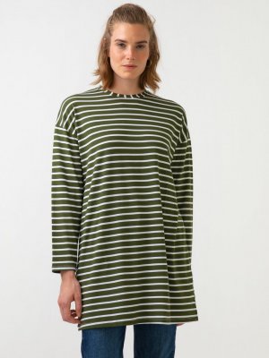 Touche Prive Haki Çizgili Örme Tunik