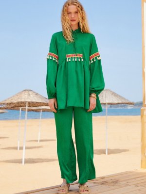 Touche Prive Yeşil Püsküllü Etnik Tunik