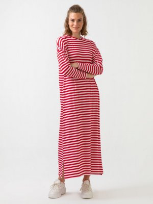 Touche Prive Kırmızı Çizgili Örme Elbise