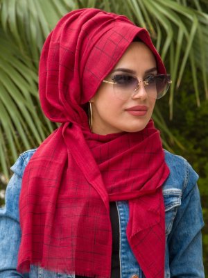 AİŞE TESETTÜR Bordo Kare Desenli Hazır Türban