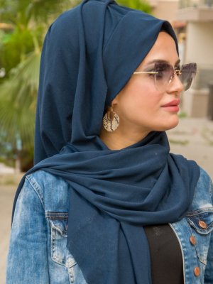 AİŞE TESETTÜR Lacivert Çift Kullanımlı Bone Şal