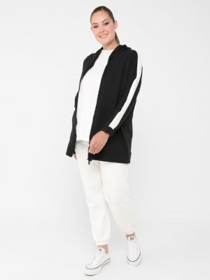 Alia Siyah Büyük Beden Kapüşonlu Kap